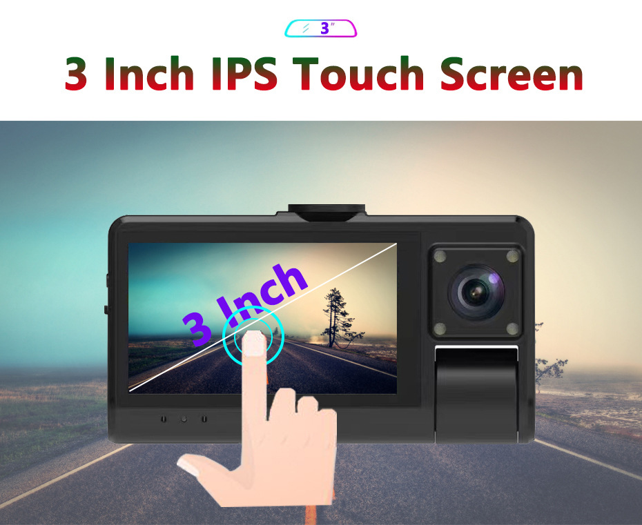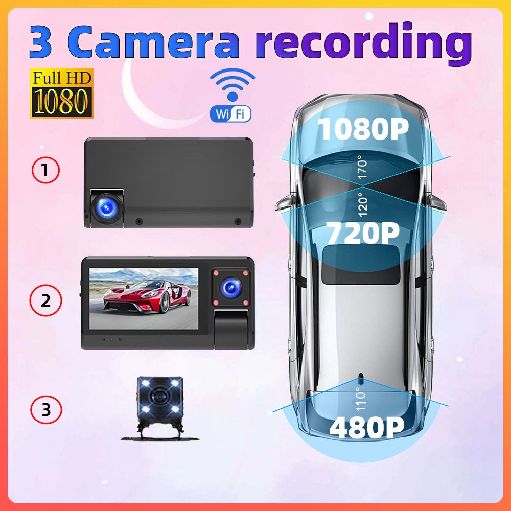 This is a 3 cameras Dashcam kit which support WiFi Free APP for preview and download. The recording resolution are 1080P for front camera, 480P for rear camera and extended camera.